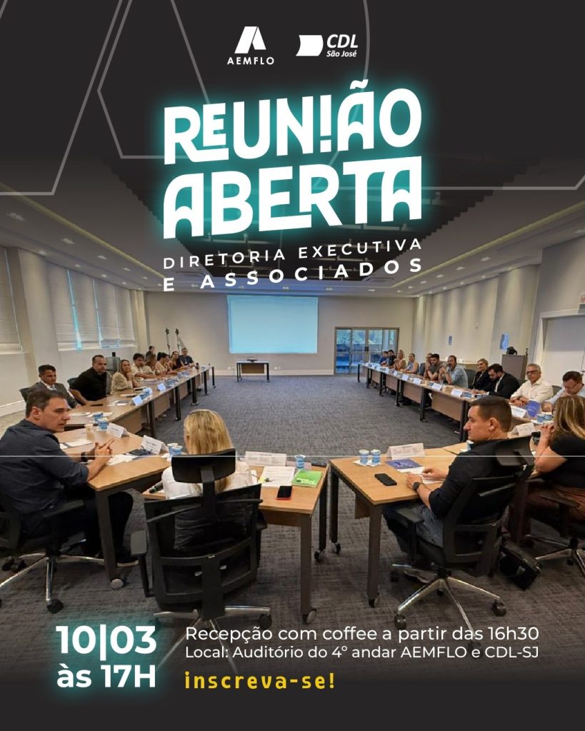 A AEMFLO e a CDL São José promovem, no dia 10 de março (terça-feira), a primeira edição da Reunião Aberta entre Diretoria Executiva e associados. O encontro fortalece o relacionamento com empresários da região e amplia a transparência na gestão.