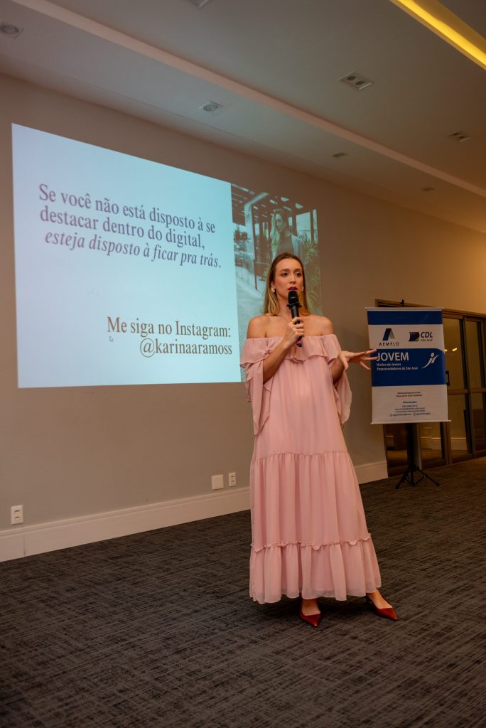Karina é influenciadora e empresária com mais de 8 anos de experiência e trouxe uma visão detalhada sobre as mudanças do mercado digital, destacando a necessidade de adaptação, clareza de posicionamento e criação de comunidade.